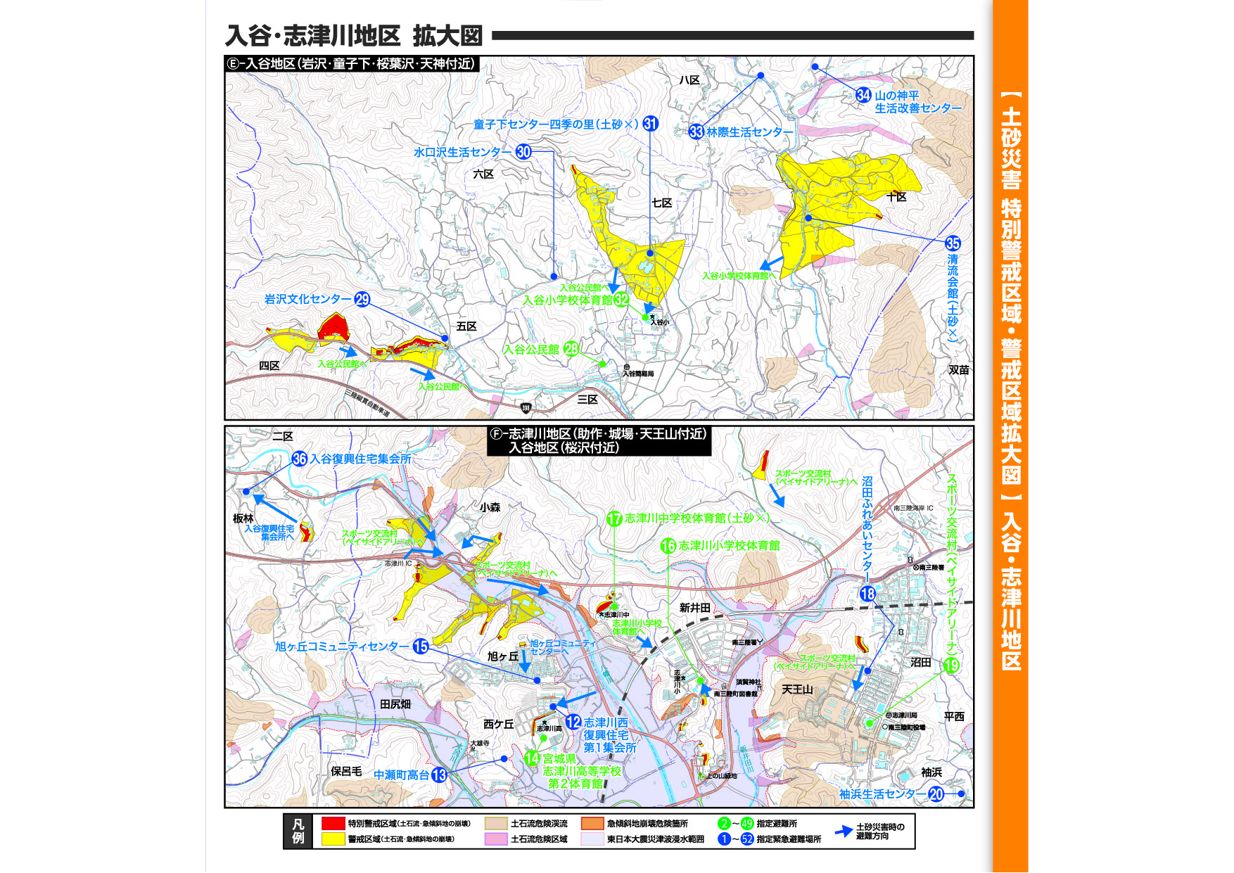 (注意)防災マップに記載の「No22荒砥コミュニティセンター」は、指定緊急避難場所となりますので、訂正いたします。