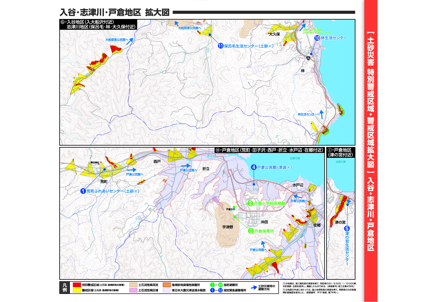 南三陸町防災マップ(志津川地区・戸倉地区・入谷地区の拡大図) (JPEG: 1.8MB)