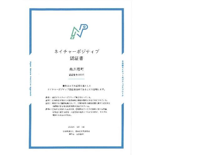 ネイチャーポジティブ自治体認証を取得しました