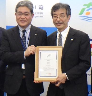 この認証は、宮城県内で初の取得であり、ラムサール条約湿地に登録された志津川湾の保全などで先進的な取り組みをしていると評価されました。